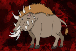Battleswine also known as “wild swine” was amongst the widest-ranging mammals in the world. Battleswine were bulky, massively built pigs with short stubby legs. They couldn’t run very fast but they could clear a path through an advancing army in a hurry. Adults grew to about 1.2 m ( 4 ft.) and weighed roughly 225.8 kg (500 lbs.) They were known simply as “Wild Swine” until they emerged as a favored mount during early wars. Equipped with a face full of tusks and horns, they were the first mammal to be incorporated as a mount during wartime primarily for halflings and truly earned their title as “Battleswine.”